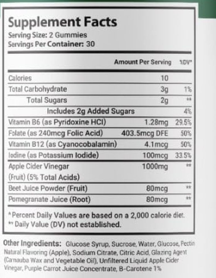 Ingredients: Vitamin C, Beet Juice, Vitamin B12, Pomegranate Juice, Apple Cider Vinegar, and more.