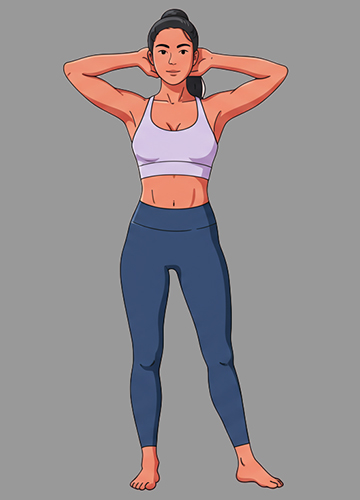 Stand with your feet shoulder-width apart and clasp your hands together.