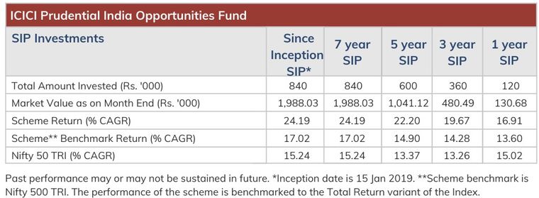 1. Different plans shall have different expense structure. The performance details provided herein are of ICICI Prudential India Opportunities Fund.