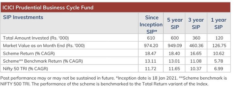 1. Different plans shall have different expense structure. The performance details provided herein are of ICICI Prudential Business Cycle Fund.