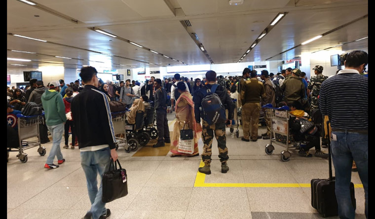 Passengers crowded at the Indira Gandhi International Airport, Delhi | Neeraj Krishnan