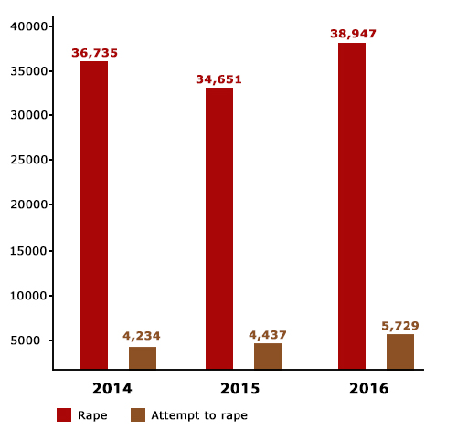 A large number of rapes go unreported. The willingness to report rape cases has increased in recent years after some rape cases got widespread media attention and prompted angry protests.