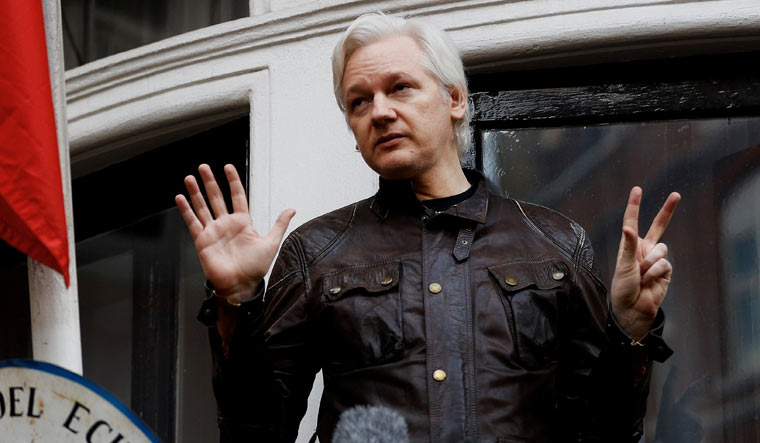 [File] WikiLeaks founder Julian Assange at the Ecuadorian embassy in London | Reuters