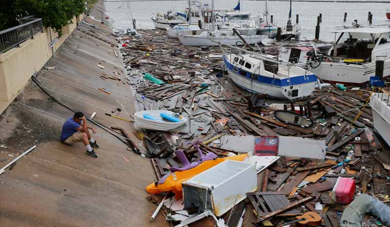 Allen Heath surveys the damage to a private marina after it was hit by Hurricane Hanna, Sunday, July 26, 2020, in Corpus Christi, Texas. Heath's boat and about 30 others were lost or damaged | AP