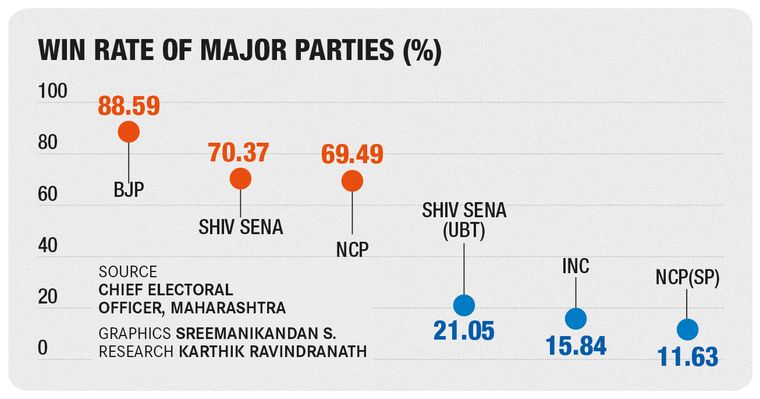 Much like in other states―Mamata Banerjee in West Bengal and Shivraj Singh Chouhan in Madhya Pradesh owe huge victories to similar schemes―the Ladki Bahin programme is being acknowledged as a major driving force behind the Mahayuti victory. It is little wonder then that Devendra Fadnavis and Shinde both thanked the state’s women voters―the state recorded a 6 per cent increase in women voters’ turnout compared with the 2019 election.