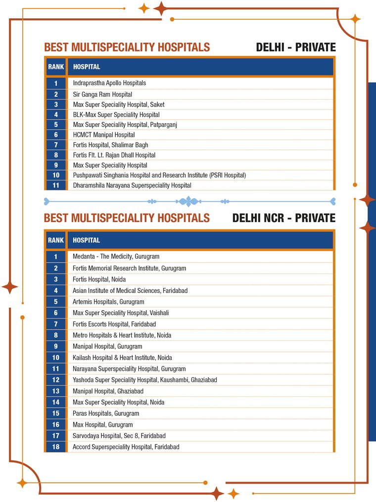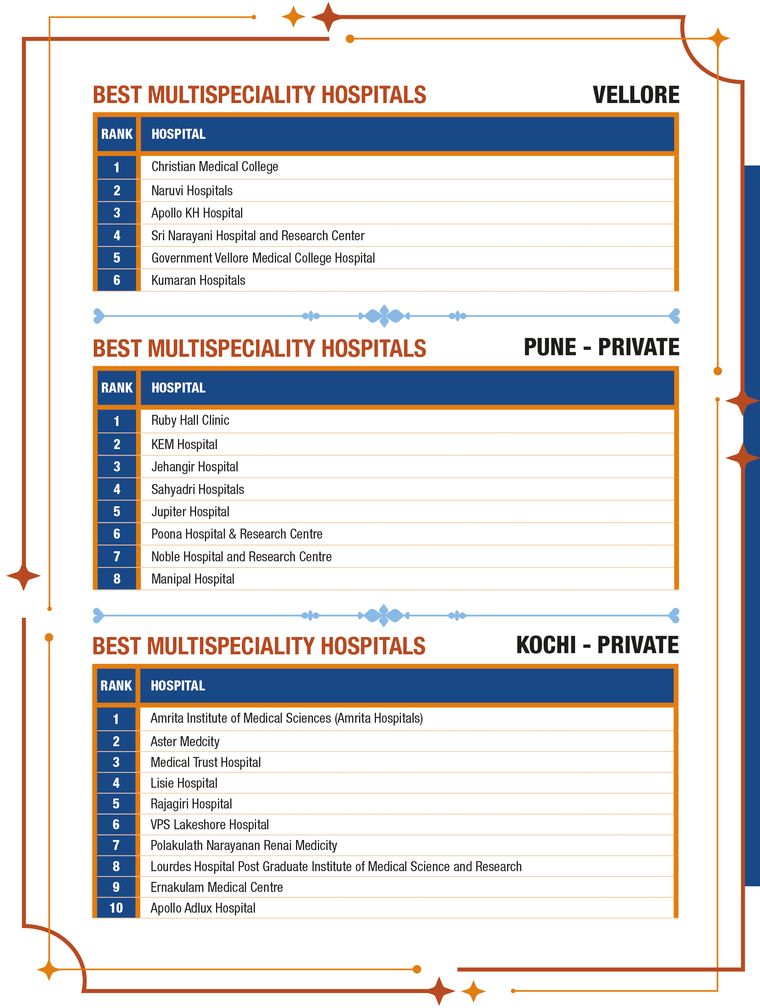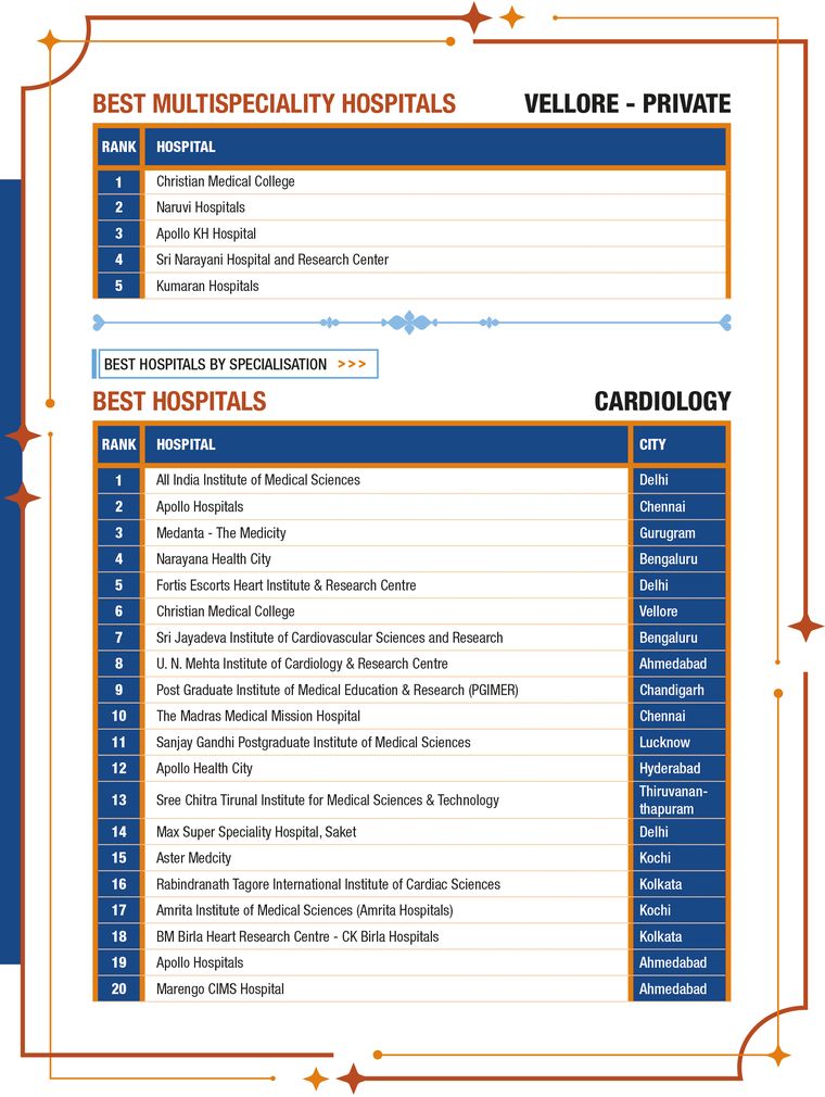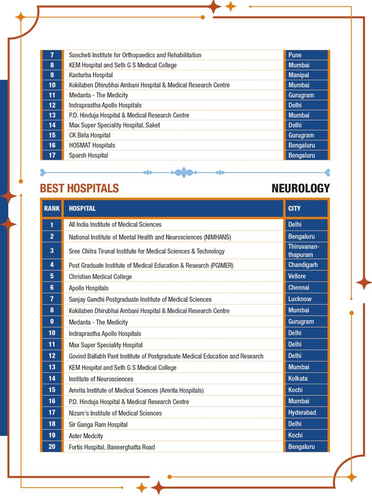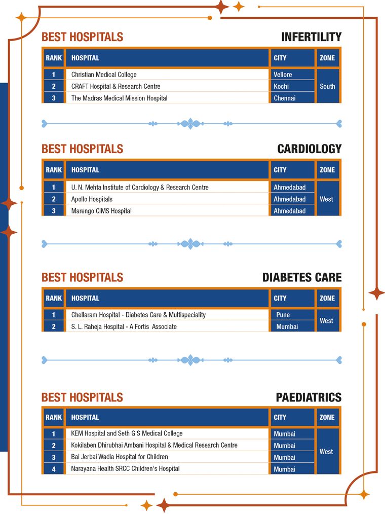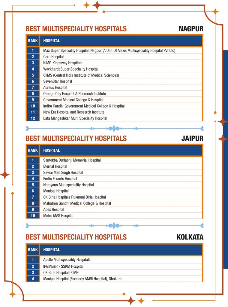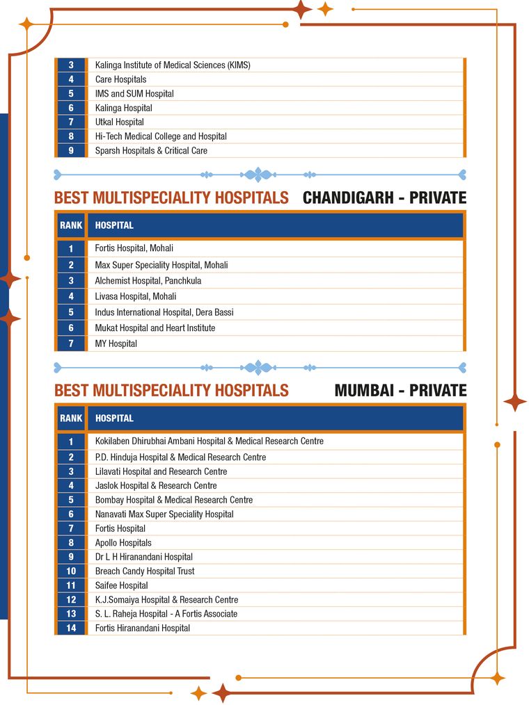 The survey covered 19 cities (plus the National Capital Region) that are important medical centres. Top hospitals for 10 specialisations were also ranked.