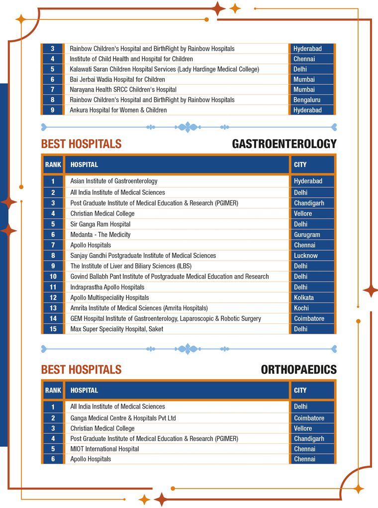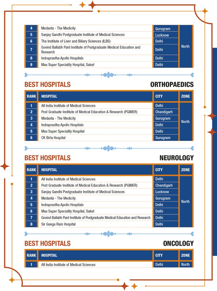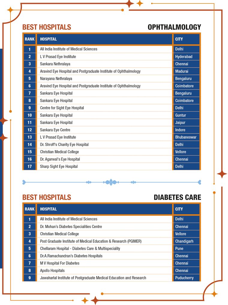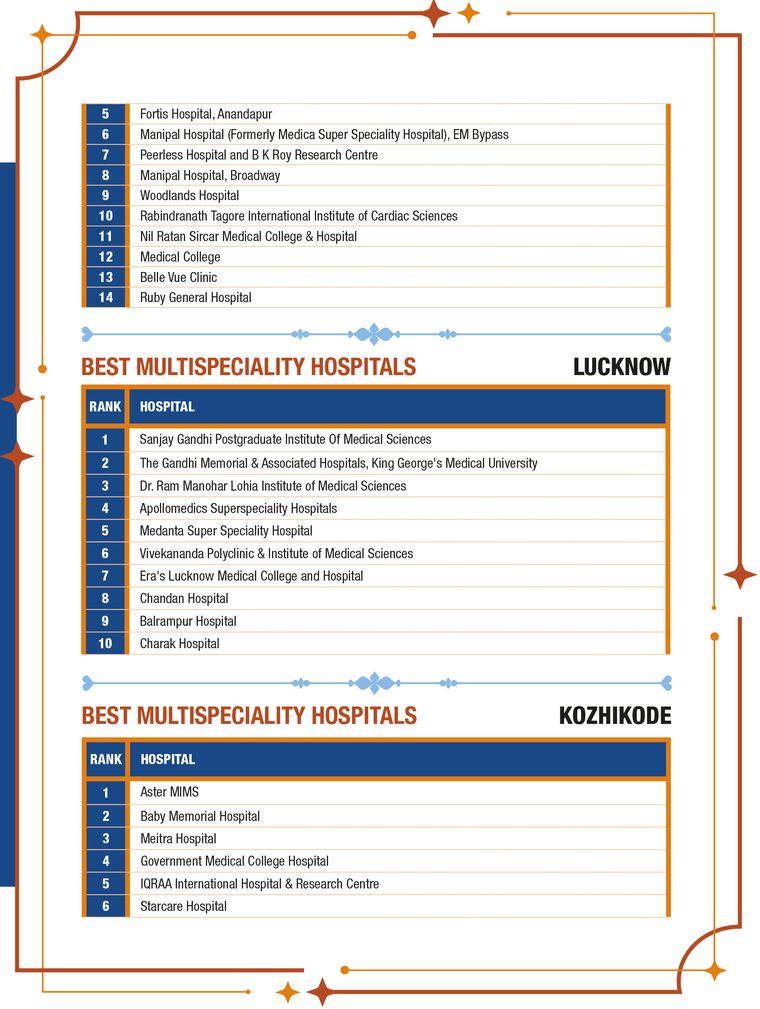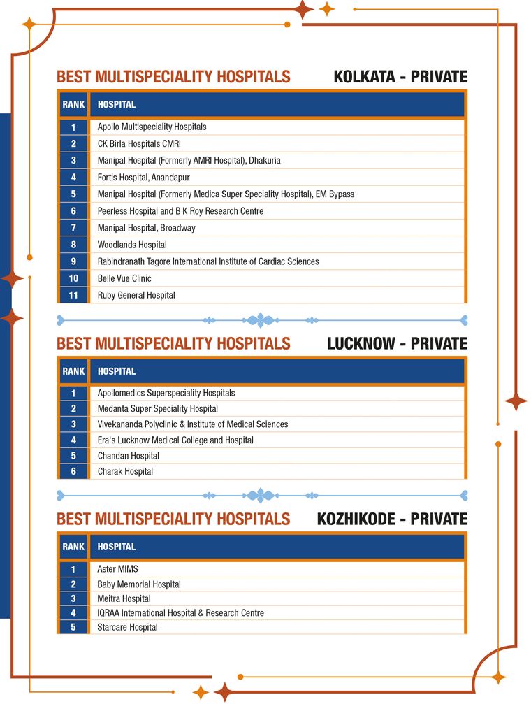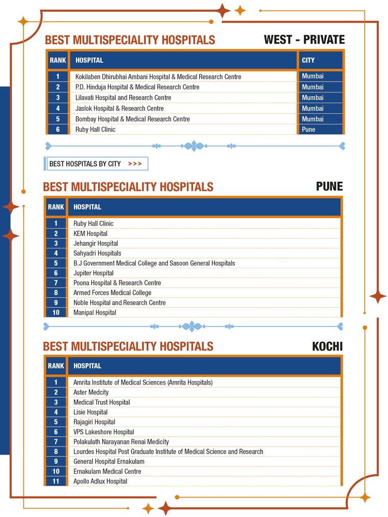 The survey covered 19 cities (plus the National Capital Region) that are important medical centres. Top hospitals for 10 specialisations were also ranked.