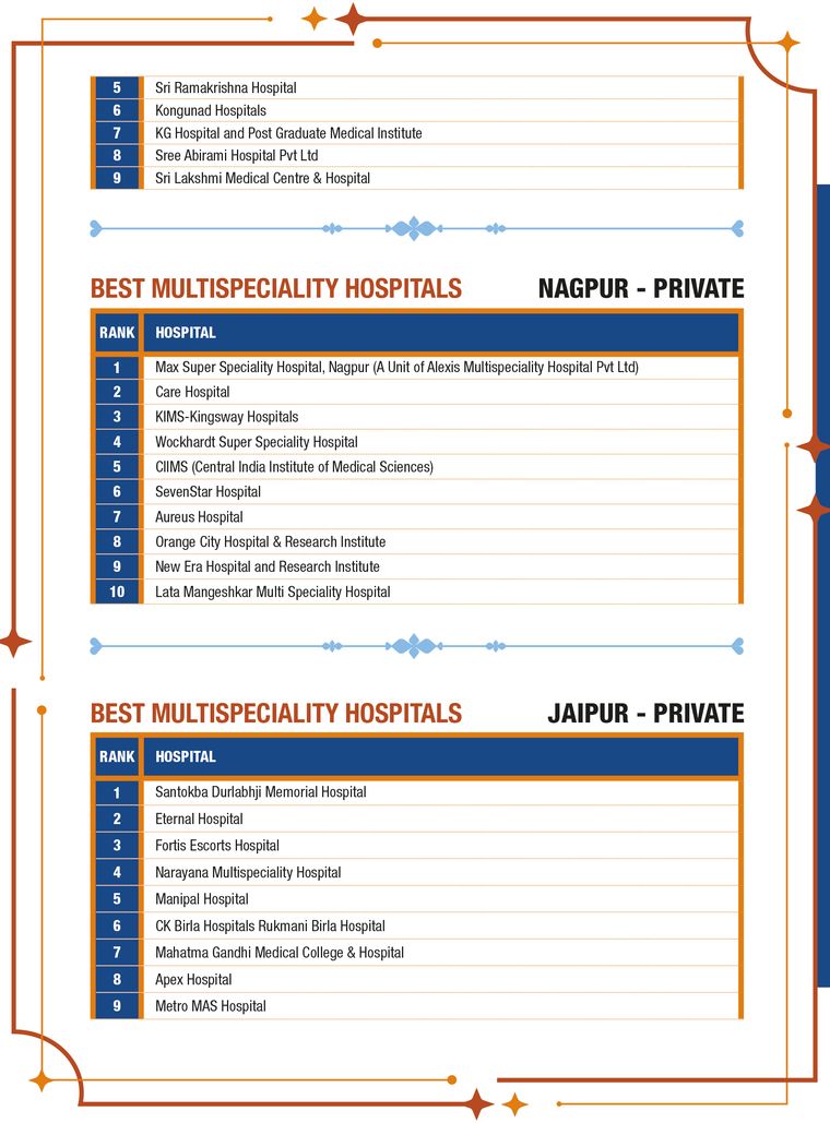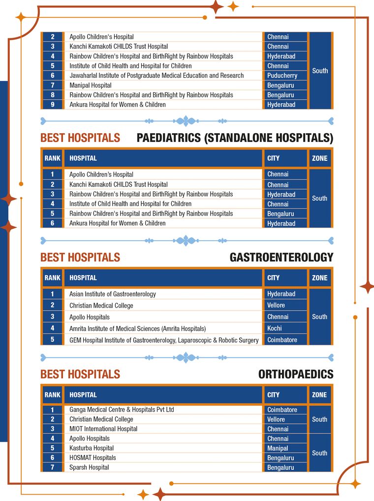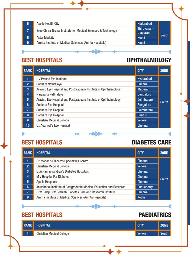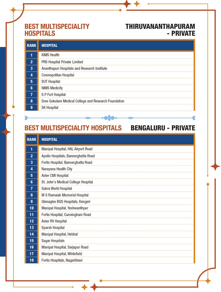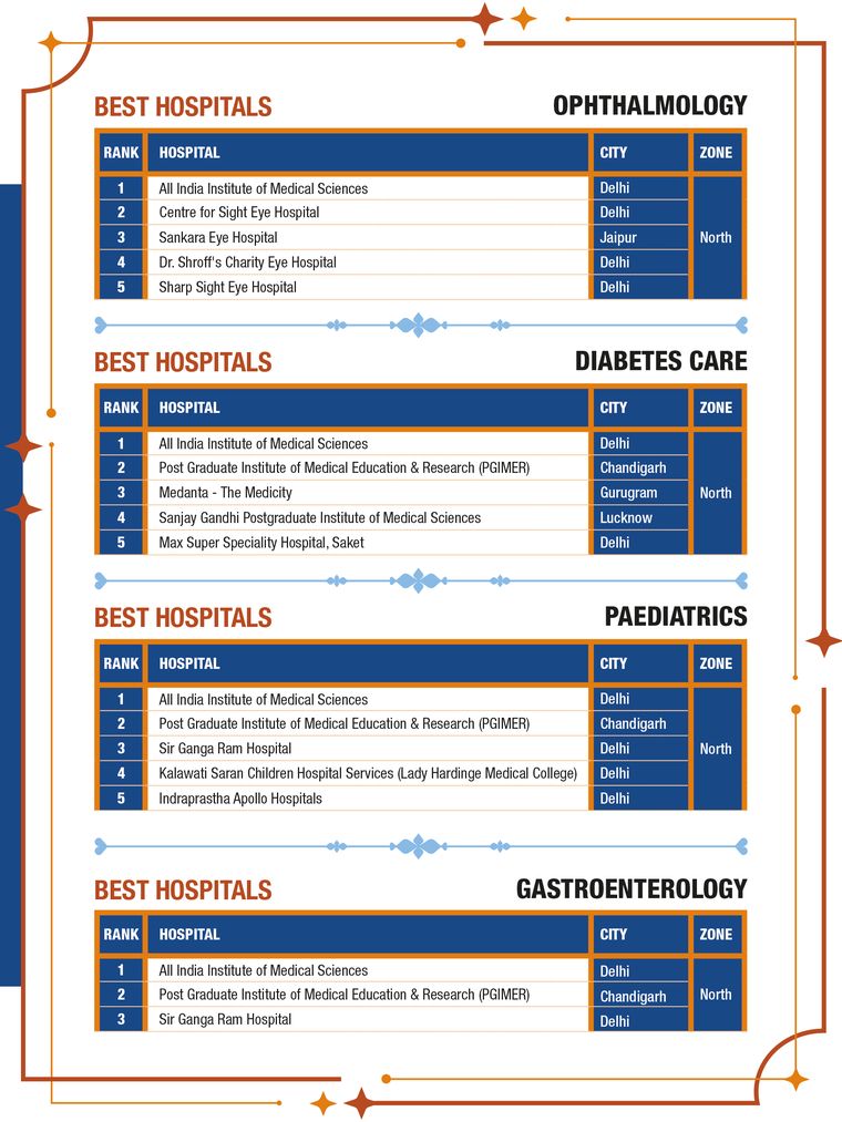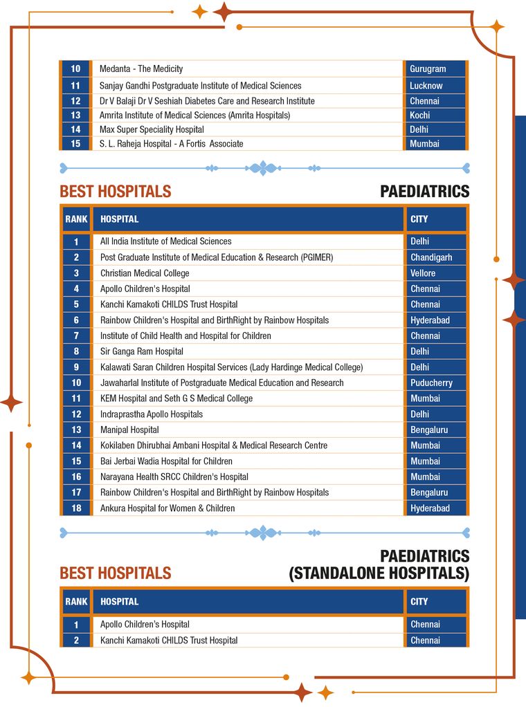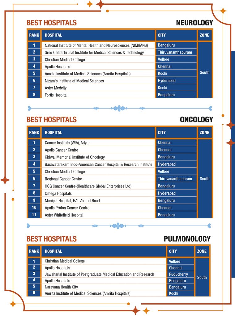 The survey covered 19 cities (plus the National Capital Region) that are important medical centres. Top hospitals for 10 specialisations were also ranked.
