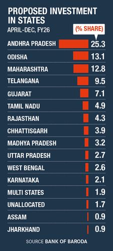 The investment is neither a one-off bonanza nor a stroke of luck. A recent Bank of Baroda report shows that Andhra Pradesh has emerged as the preeminent investment destination in India, attracting 25.3 per cent of the total investment commitments made during the first three quarters of the financial year 2025-26. Of the Rs26.6 lakh crore investment commitments Indian states have received, Andhra Pradesh alone accounted for Rs6.73 lakh crore.