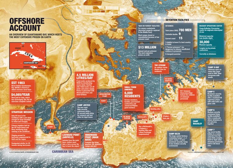 When THE WEEK visited Guantánamo Bay in 2013—the only Indian publication to be allowed access—it found that the prison remained fully operational despite Obama’s promise. Guantánamo was a virtual fortress. Barbed wire, watchtowers and cameras encircled the site, while armed patrols monitored roads and the coastline. Guards were identified by numbers rather than names to preserve anonymity and prevent personal contact with detainees. Escape was impossible. Motion and sound sensors guarded the US perimeter, while the Cuban side was sealed off by mines and a 13km cactus barrier. Even senior Pentagon officials required multiple security clearances to enter.