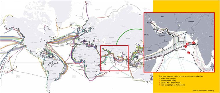 In December 2023, a Telegram channel affiliated to Houthi forces posted a map of submarine cables in the Red Sea, although they had earlier denied allegations of attacks on cables. Along with the map, the Houthi-affiliated group posted a message underscoring the strategic importance of Yemen as far as submarine cables were concerned.