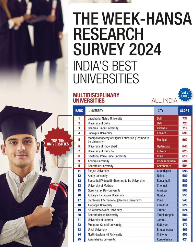 THE WEEK-Hansa Research Best Universities Survey 2024 provides insight into the hierarchy of multidisciplinary, technical and medical universities in the country. This year, the study was done across 15 cities.