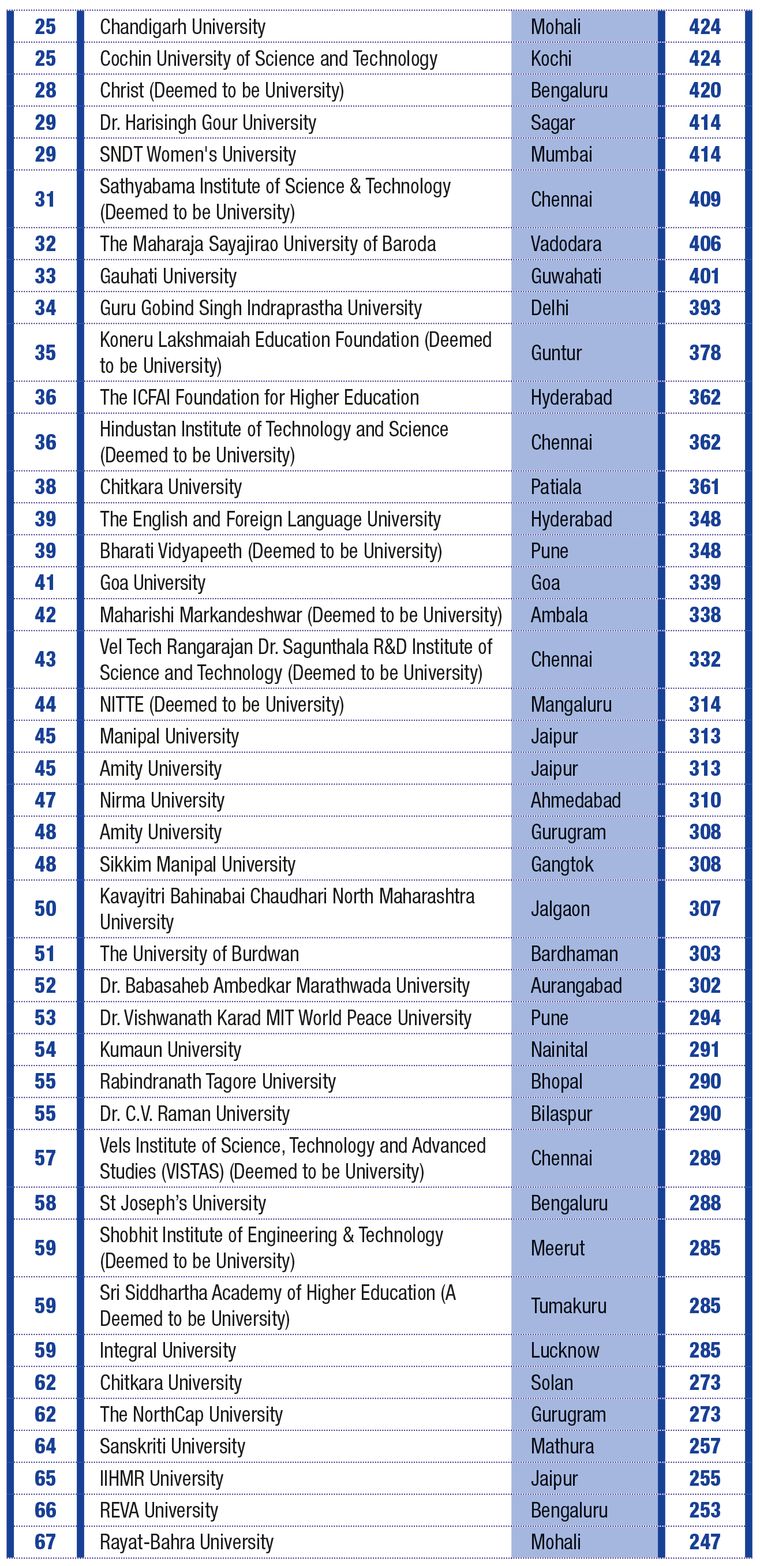 To be eligible, universities had to be recognised by the UGC, offer full-time postgraduate degree courses in at least two disciplines and should have graduated at least three batches from the postgraduate programmes.